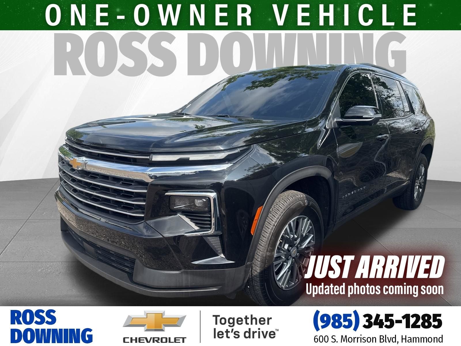 Mosaic Black Metallic 2025 Chevrolet CARFAX One-Owner. Traverse LT 1LT FWD 8-Speed Automatic 2.5L DOHC 3rd row seats: split-bench, 4-Way Manual Front Passenger Seat Adjuster, 8-Way Power Driver Seat Adjuster, Alloy wheels, Apple CarPlay/Android Auto, Driver Confidence Package, Fully automatic headlights, HD Surround Vision, Power Outlet, Rear Pedestrian Alert, Steering wheel mounted audio controls, Traffic Sign Recognition, Wheels: 18 Grazen Metallic Machined-Face Aluminum.