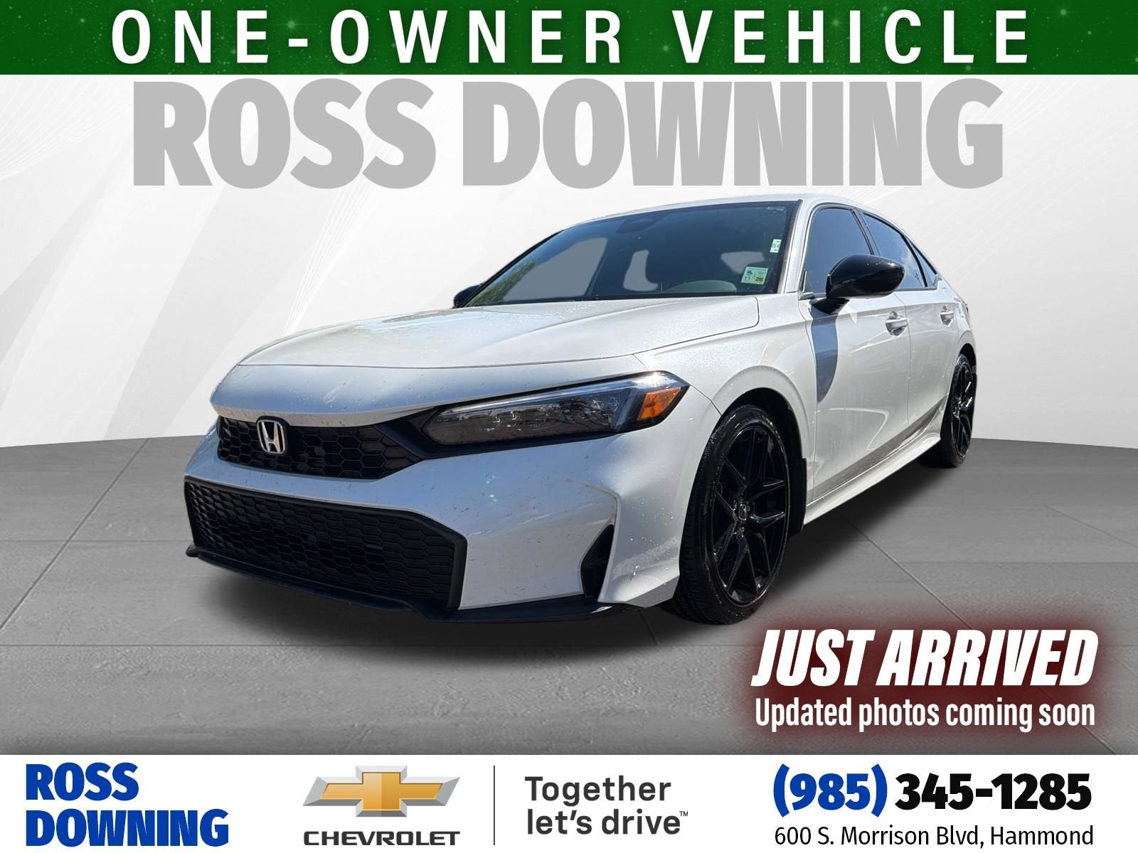 White 2025 Honda CARFAX One-Owner. Civic Sport FWD CVT 2.0L I4 DOHC 16V Adaptive Cruise Control: Adaptive Cruise Control (ACC) with Low-Speed Follow, Alloy wheels, Apple CarPlay/Android Auto, Auto High-beam Headlights, Automatic temperature control, Blind Spot Information (BSI) System warning, Cloth/Leatherette Seating Surfaces, Exterior Parking Camera Rear, Wheels: 18 Gloss Black Alloy.